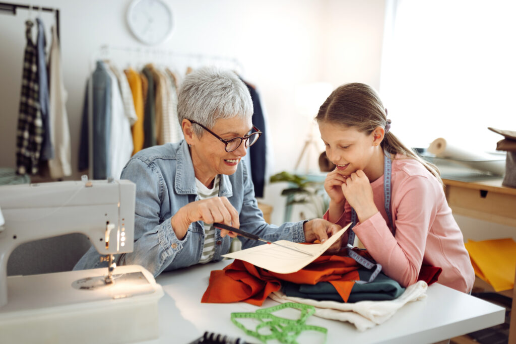 Sömnad av kläder, väskor och accessoarer blandas med återbruk: laga, sy om, sy in – förvandla gamla jeans, T-shirts eller skjortor till något nytt.